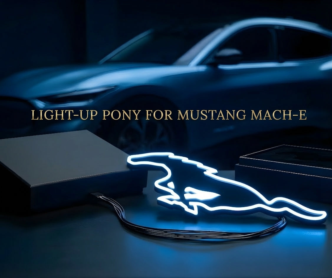 The ULTIMATE Pony ... the most original and dazzling illuminated pony ever. This is the must‑have front‑end upgrade for your Mustang Mach‑E (2021–2026). Designed with authentic style, featuring advanced lighting and easy installation, all backed by an optional personalized LIFETIME warranty card with your name and the serial number.